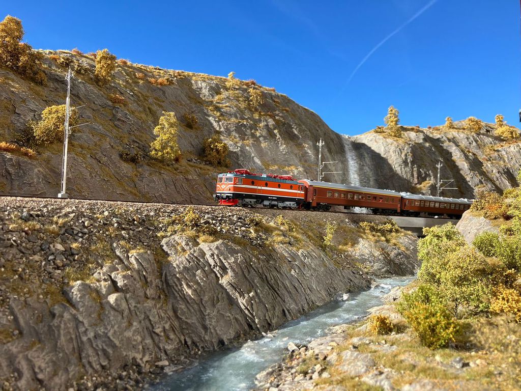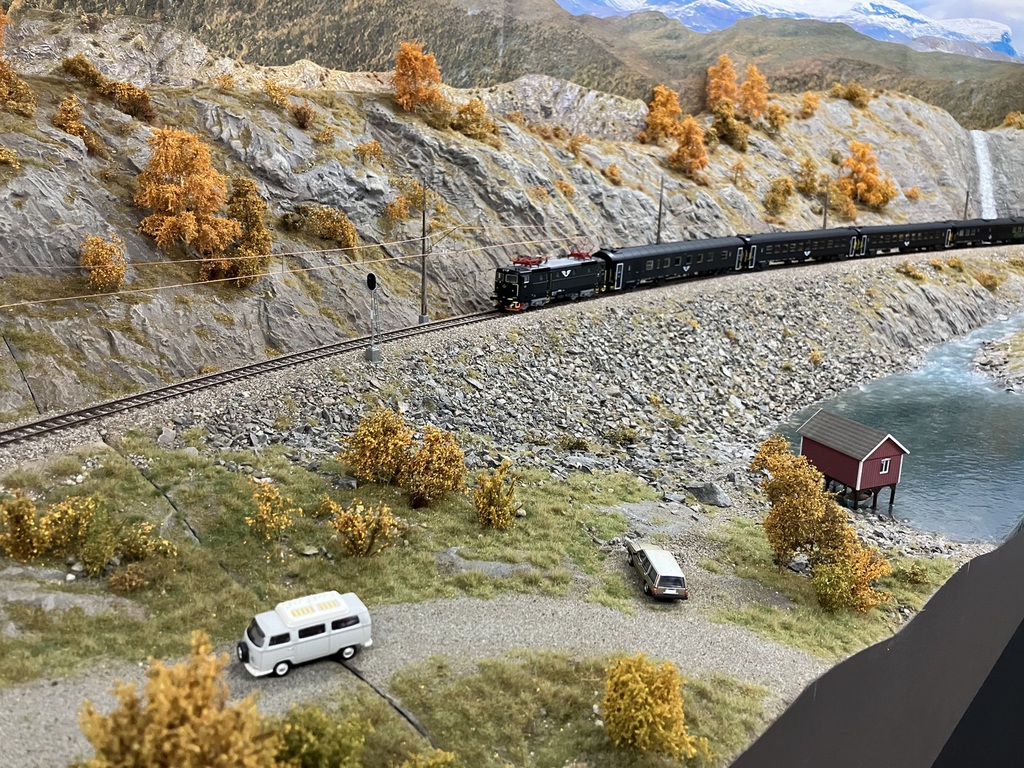 Inspiriert von unseren eigenen Reisen durch Norwegen, ist diese Anlage das Ergebnis unserer Faszination für die skandinavische Natur und die beeindruckenden Bahnlandschaften, die wir dort erleben durften. Lass dich von der Atmosphäre mitreißen und entdecke die Schönheit und den Zauber, die in jeder Kurve und jedem Detail unserer Modellbahnanlage verborgen sind.